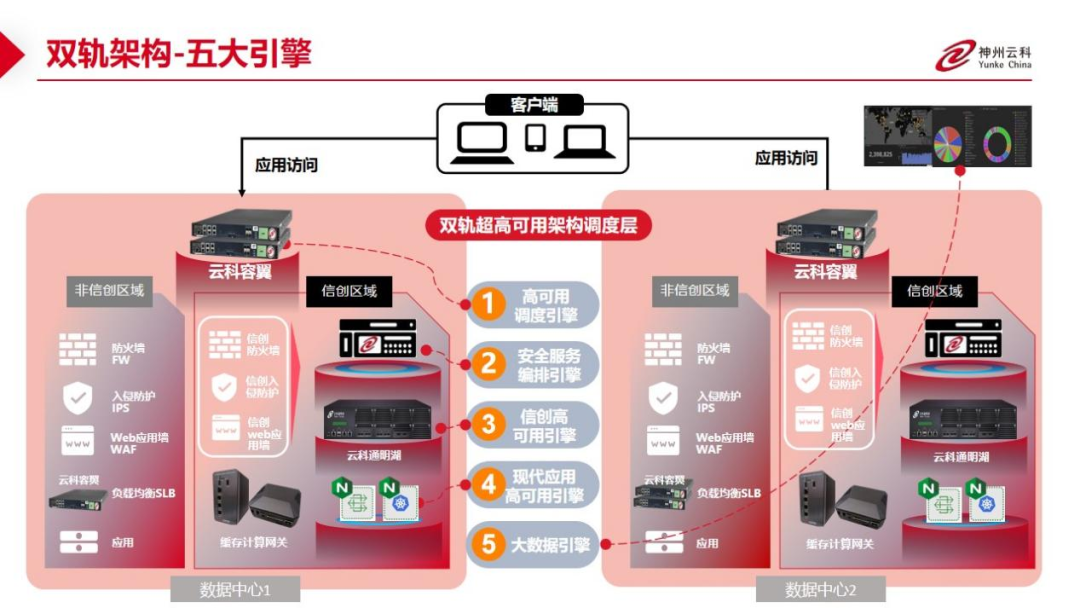 为了更好的适配双轨超高可用架构,神州云科应用交付控制器容翼系列产品和云科通明湖信创系列产品一方面可以保证信创产品的稳定性,弥合性能与企业应用要求的差距;一方面,当业务面对合规、风险和创新的挑战时,实现云原生可信开源与跨域协同。