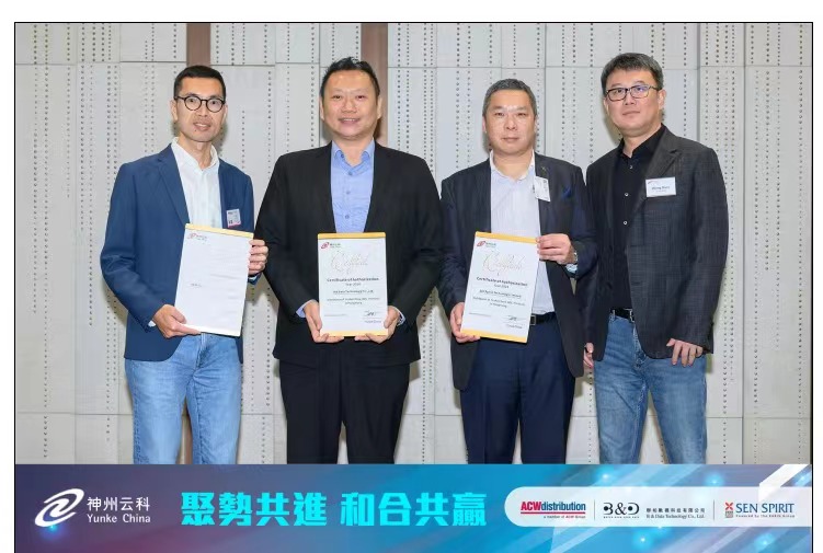 神州码集团(简称:神州数码,股票代码:000034.SZ)旗下神州云科于2月22日-23日,首度在中国香港和中国澳门举办合作伙伴授权发布会,正式宣布授权亚思登软件科技有限公司 (ACW Distribution (HK) Limited)、群柏数码科技有限公司 (B & Data Technology Company Limited)以及翔灵科技有限公司(Sen Spirit Technology Limited) 成为神州云科在港澳地区的总代理商。